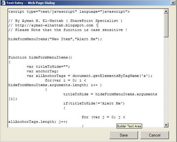 Download hideFormMenuItems.zip – 755 B , Trick #3 will deal with where and how you can add the function to your list form.