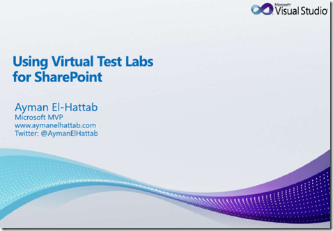 ou can access the full slide-deck from here http://www.slideshare.net/aymanelhattab/using-virtual-test-labs-for-sharepoint