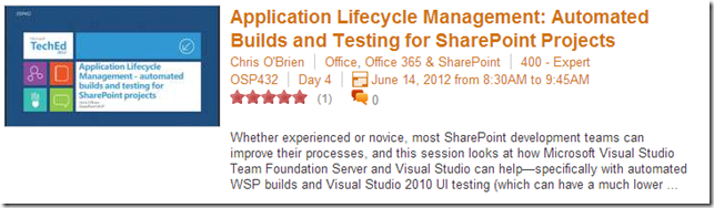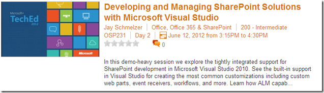 TechEd North America 2012 particularly was very special to me because it featured many sessions about SharePoint Development & Testing. I’ve compiled below a list of the must-watch videos for SharePoint Developers, Testers & Architects :
