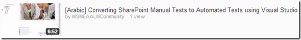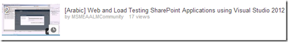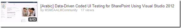 As the ‘SharePoint Practice Lead’ for MEA ALM Community and as promised during the official community launch, I’ve created a video series in Arabic to explain & demonstrate SharePoint Testing & Troubleshooting using Visual Studio 2012 & Microsoft Test Manager 2012. I’ve included all the videos in a YouTube playlist, you can access the list from here.