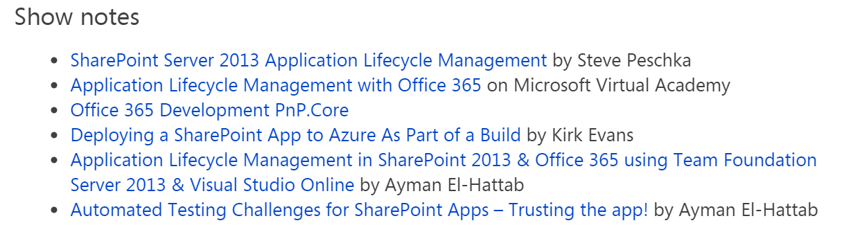 In episode 31 of the Office 365 Developer Podcast, Jeremy Thake (Senior Product Manager @ Microsoft) speaks to Vesa Juvonen about Application Lifecycle Management (ALM) with Office 365 Development. Vesa shares what they have been doing with the Office 365 Patterns & Practices initiative with regard to ALM as well as what his core customers that he works with are doing. He also talks about different options for dev/test/prod environments for Office 365 too.