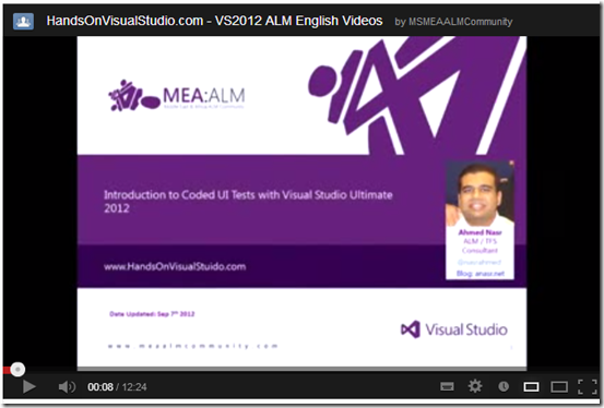 It’s worth mentioning that both videos were created for MEA ALM Community YouTube Channel .. Stay tuned for another video about SharePoint Coded UI Testing very soon..