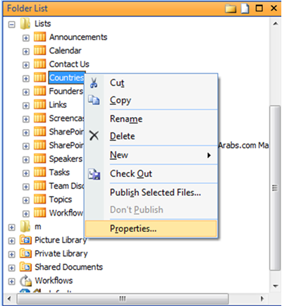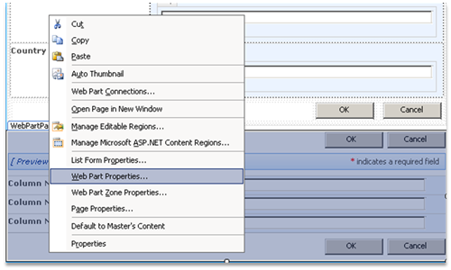 5. Now, you must hide the default List Form Web Part. Right-click the default List Form Web Part and then click Web Part Properties.