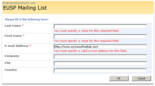 I will also show you how to validate the email addresses entered by the subscribers using regular expressions and, at the end, I will thrash out a trick to enable the DataFormWebPart to be viewed by anonymous users.