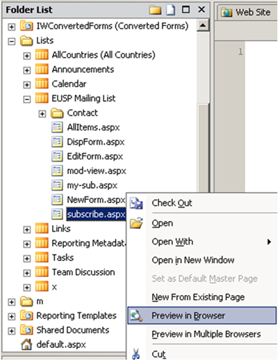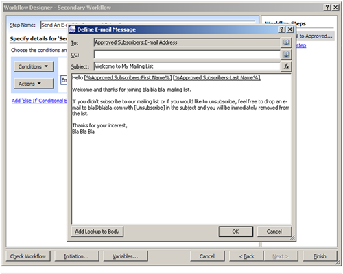 This is the third article in a multipart series that is intended to help you creating mailing lists for your SharePoint sites or blogs without writing a single line of .NET Code. In the introductory article, I have listed the project initiatives, requirements, and objectives. In Part 1, I created a secured backend where we will store the subscribers’ contacts. In Part 2, I have configured the ‘Contact’ content type, created a subscription form for the mailing list and did some simple customizations to it.